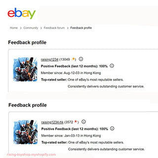 To reach more fans worldwide, we also launched two eBay stores (IDs: raising1234 & raising1234-hk).